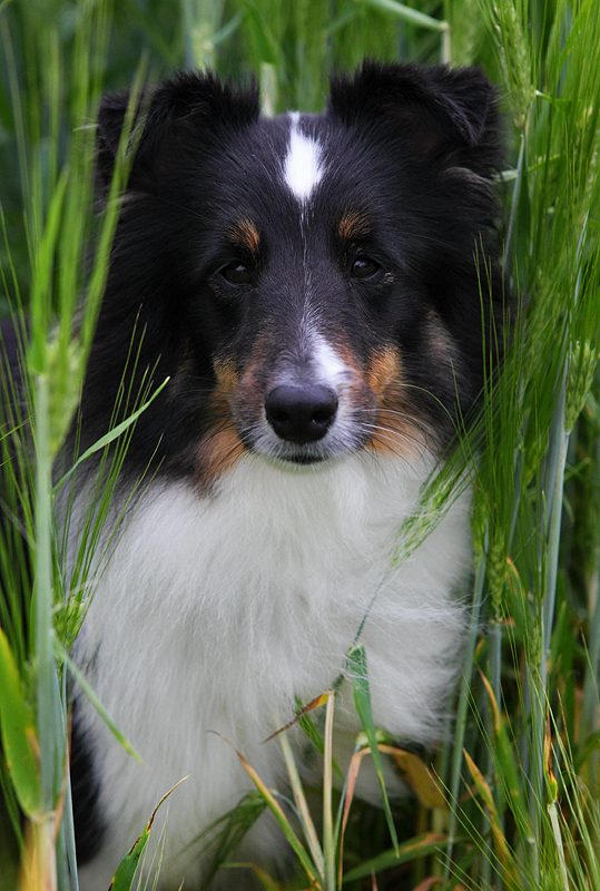 "3-vuotias tricolour jonka niska ja selkälinja antavat hänelle luonnollista tasapainoisuutta ja karismaa. Erinomainen pää, ei tummimmat silmät. Varma liike. Voisi kontrolloida häntäänsä paremmin." AVO-ERI - rodunomainen lähestyttäessä