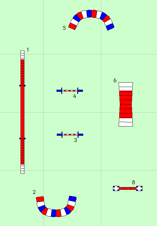 Toinen rata oli tollanen tosi kiva peruspätkä. Toi kuva on aika väärin; puomi ja A oli toisinpäin, renkaan tilalla oli muuri ja kaikki esteet oli paljon lähempänä toisiaan. Alussa välistäveto, vitosaidalla poispäinkäännös, 11-12 valssaus ja viimeisten keppien jälkeen tein takaaleikkauksen. Lara kävi vähän kierroksilla ja näytti hyppykepiltä kun loikki noita aitoja - aivan oikeinhan se meni, mutta ei millään tasolla hallitun näköstä. Kepit meni tosi kivasti, mutta seiskaputkelle mentäessä oli aika säätämistä, koska palkkasin keppien jälkeen joten vauhti loppu. Mitään ongelmia tossa ei ollu, ja parin toiston jälkeen se oli jo ihan mukiinmenevän näköstäkin, ainakin mun näkökulmasta...