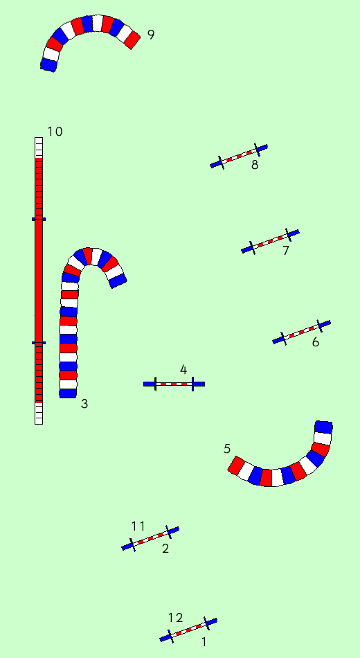 Kisaavien rata oli aika haastava, täynnä valsseja ja jänniä ohjauskuvioita, ja olihan tossa poispäinkäännökset ja leikkauksiakin. Halliin tullessaan Lara oli hämillään, kun tutussa treenipaikassa oli muitakin ihmisiä ja koiria, ja kun otin sen kutsulla kakkoselle, se lähti jolkottelemaan ihmeissään katsomoa kohti, sai ahaa-elämyksen ja kiersi putken takaa ja meni sen väärästä päästä. Loppurata menikin puhtaasti, ja vaikka tein paljon ohjausvirheitä, koira meni hienosti ja rata osottautu ihan simppeliksi. Kepit menee nätimmin oikeassa ohjauksessa, joten kasihypyn jälkeen valssasin oikealle, Lara kepitteli tosi itsenäisesti ja vauhdikkaasti ja lopussa palkkasin, lähetin koiran kymppiputkeen ja leikkasin takaa. Vauhtia ois voinu olla paremmin, mutta ensimmäinen ratahan on aina vähän hakemista. Tosta ropsahti siis hylky ajalla 57.67s ja etenemä 2,3. Lähtö ja jäi vähän häirittemään, joten otettiin toinenkin startti, ja lähtö meni nappiin, mutta kolmosella tein sen virheen, etten mennytkään kolmosen ja nelosen väliin koiran hypätessä kolmosta, vaan jäin sen taakse kun lähetin sen neloselle. Sen seurauksena Lara hyppäs nelosen väärältä puolelta ja meni putkeen väärästä päästä. Loppuradan ohjasin kuitenkin ite huomattavasti ensimmäistä rataa paremmin, ja keppien jälkeen koirassa oli jo tosi hyvin vauhtiakin. Tältä radalta hylky ajalla 50.06s.