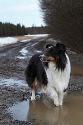 Rata oli muutamalla toistolla hyvä, ja alettiin ottaa toistoja keinulla. Uskallettiin päästää keinu jo vapaasti alas ja pikkuhiljaa äitikin siirtyi katsomoon pois keinun vierestä. Otettiin toistoja molemmilta puolilta ja molempiin suuntiin, ja meni niin varmasti, että rakenneltiin keinun ympärille jo vähän rataakin - siirsin keinun 6 ja 9 -aitojen tilalle, ja sovellettiin siitä erilaisia pieniä pätkiä käyttäen vitosaitaa, muuria ja putkia. Eikä olisi voinut paremmin mennä! Loppuun otettiin vielä vähän kepittelyä molemmilta puolilta molempiin suuntiin, ja koira ihan loisti :)