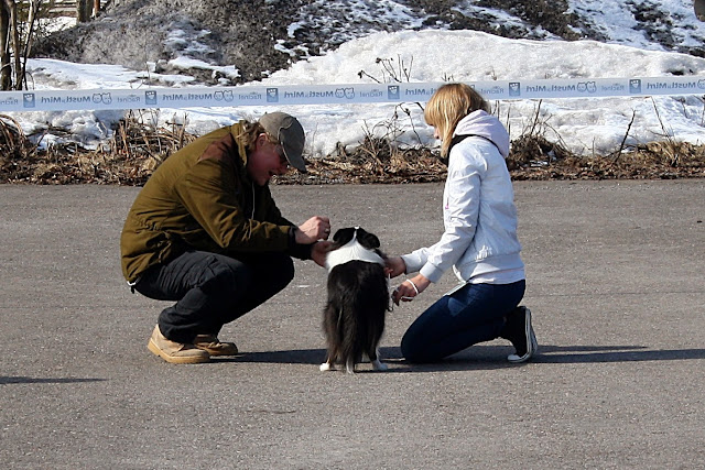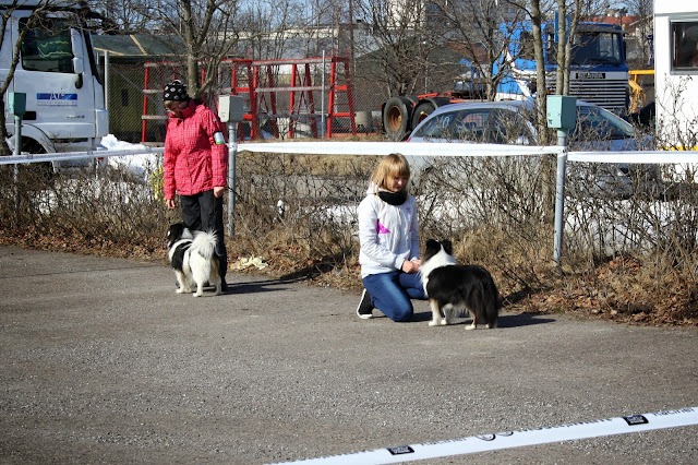 Tänään oli Kokkolan mätsärit, ja mentiin junalla, kun aikataulut sopi kerrankin yhteen. Viime junareissusta on jo aikaa, mutta Lara oli menomatkalla aika rauhallinen, mitä nyt haukkui pienesti vähän väliä, mutta rauhoittui ihan viimeisillä minuuteilla. Mätsärit järjestettiin samassa paikassa kuin viime heinäkuussa, ihan aseman lähellä. Viimeksi mulla oli ongelmia löytää postin terminaali, mutta nyt oli mukava kävellä, kun reitti oli tuttu! Paikalla olivat myös Mari ja Oliver, Asta ja Seri sekä muitakin tuttuja, joten odotteluaika meni mukavasti kuulumisia vaihdellen. Lara ei pahemmin koirista välittänyt, mutta kävi sekin vähän tuttuja moikkaamassa :)
