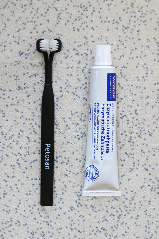 Niin oudolta kuin se aluksi tuntuikin, ollaan harjoiteltu hampaiden harjaamista nyt muutaman kerran päivässä sekä eilen että toissapäivänä, ja Lara on tottunut harjaan jo tosi hyvin. Vaikkei se itse harjauksesta pidäkkään, se on aina ihan innoissaan kun näkee että otan harjan esiin :'D Mutta pikkuhiljaa! Pitää käydä poistattamassa hammaskivet sitten viimeistään syksyllä. Eilen siistittiin myös korvat ja tassut ja leikattiin kynnet.