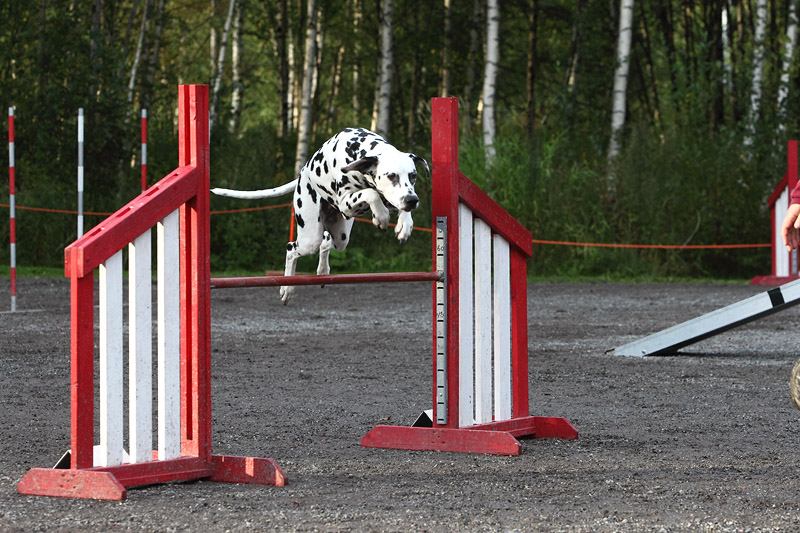 Tänään startattiin LAKKE:n kisoissa yhdellä agilityradalla. Oisin mielummin mennyt tuolla hypärille noiden kontaktien takia. Niiden pinnoissa on tosiaan sellasta terävää soramurskaa aika epätasasesti, josta Ellin Iineskin on hyppinyt alas, ja Larahan alko viime talvena kävelemään kontakteja noiden takia. Tuolla ei kuitenkaan ollut kun yksi rata ykkösille ja kakkosille, joten siihen siis!