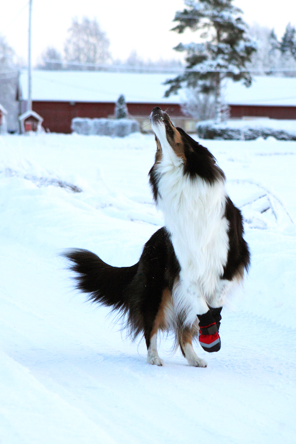 Sunnuntaina ja maanantaina saatiin lauhtuneesta säästä kaikki ilo irti kymmenenkin kilometrin lenkein, mutta nyt pakkanen on taas kiristynyt useammaksi päiväksi. Tossut siis käyttöön! Tällä viikolla ollaan viihdytty lähinnä sisällä, ja sainkin aikaiseksi siistiä vähän Laran rehottavia korvakarvoja ja ilmoitin meidät helmikuuksi aksaamaan sekä Maalahteen että Lapualle, molemmissa kaikille kolmelle radalle. Iik!
